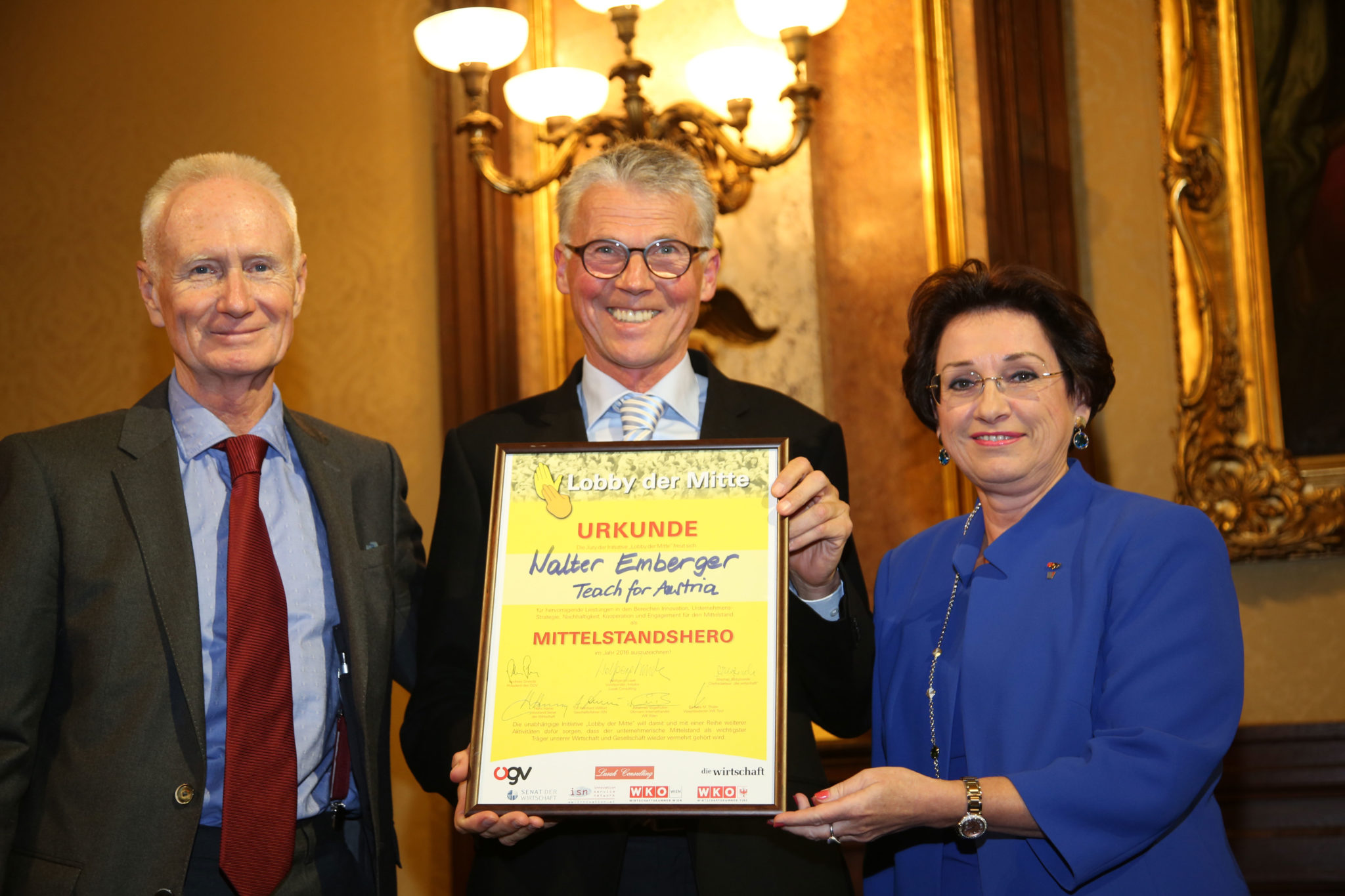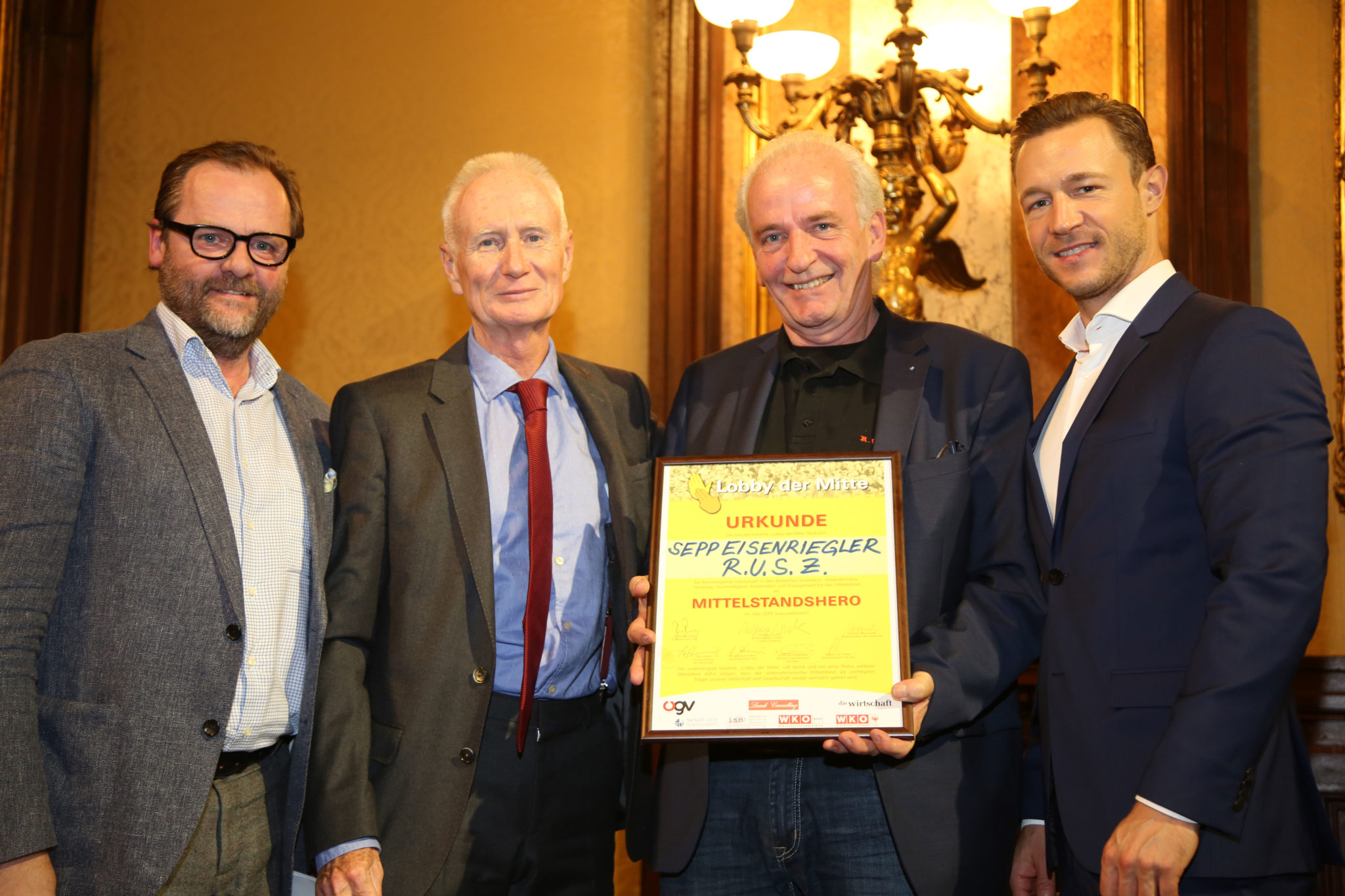 Die KMU-Plattform „Lobby der Mitte“ zelebrierte mit Unterstützung des Gewerbevereins und des Senats der Wirtschaft ihre „Helden“. Event-Initiator und Lobby der Mitte-Plattform-Betreiber Wolfgang Lusak: „Wir dürfen endlich diejenigen nicht mehr verstecken, die unseren Staat wie sonst niemand mit ihren Arbeitsplätzen, Steuern und Innovationen zusammenhalten!“