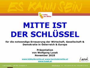 Mehr lesenLusak-Kommentar August 2025 über die Notwendigkeit „jetzt endlich“ eine Politik für die Mitte der Gesellschaft zu machen. Jetzt auch als…